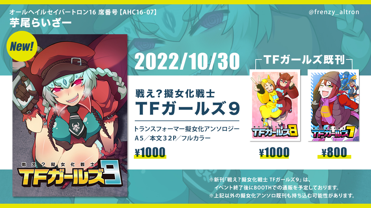 TF擬女化アンソロジー企画『戦え?擬女化戦士TFガールズ9』で参加します!(座席番号「AHC16-07」)