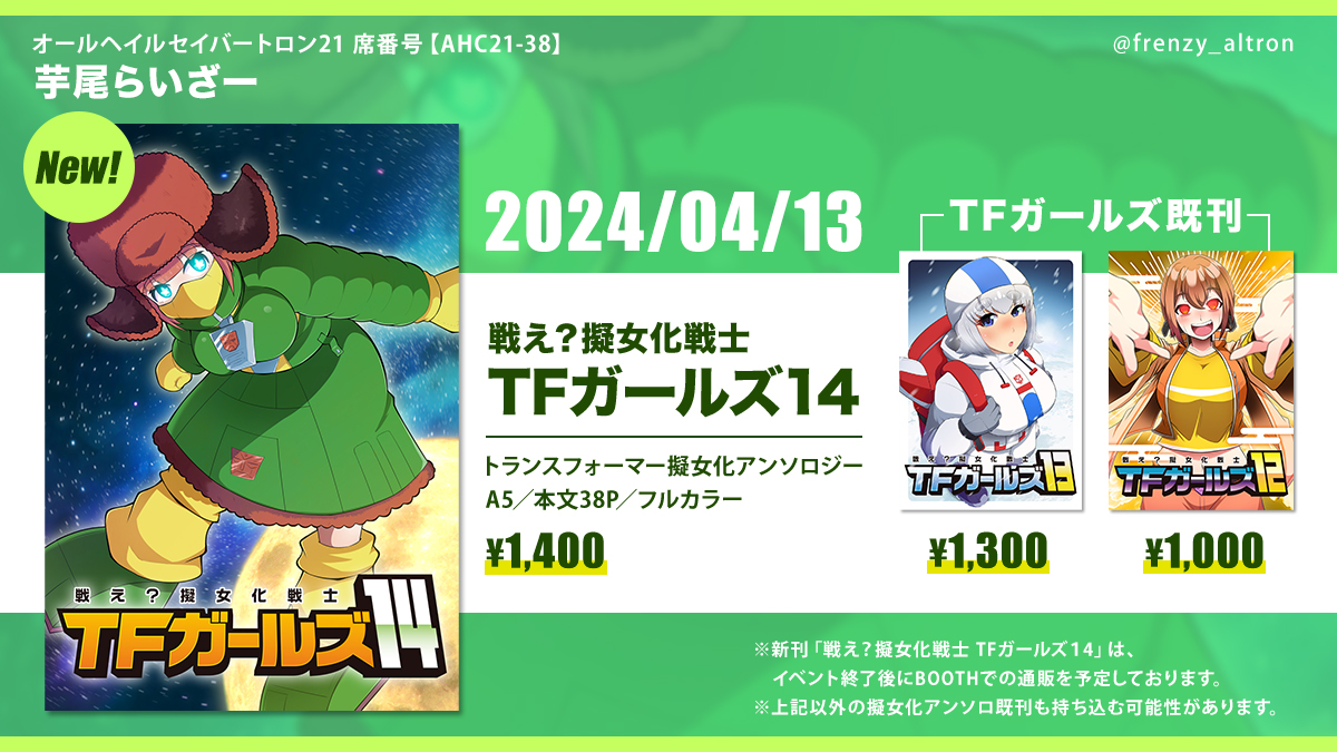 (当日は擬女化アンソロジー『戦え?擬女化戦士TFガールズ』の既刊も頒布予定)